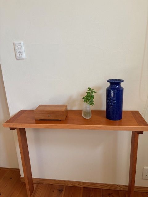合わせて脚もチェリーで製作し、飾り棚テーブルへと、華麗なる変身を遂げたのであります