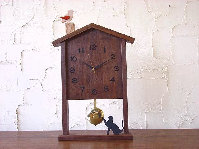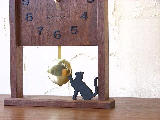 振り子時計にするのはお客様の強いご要望で、振り子が動くならばそれにじゃれている猫も欲しいとのこと・・